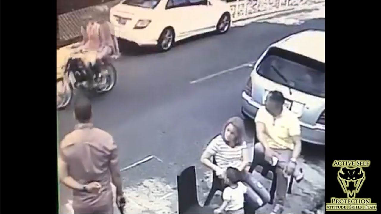 In the Dominican Republic, these kinds of motorcycle bandits are common, and this defensive display of a firearm kept things from escalating! What are the laws like in your state for a concealed carrier to display a defensive firearm?